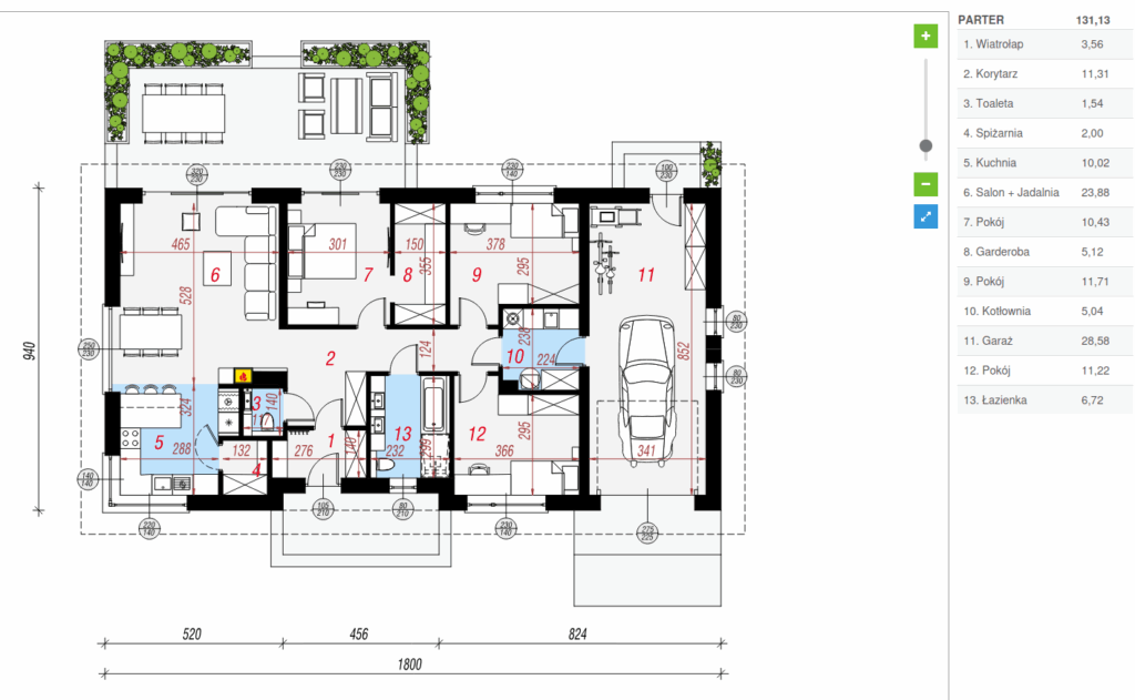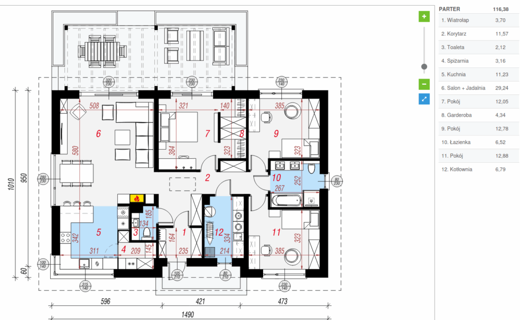 - powierzchnia: dom 1 -116 m2, dom 2 -131 m2